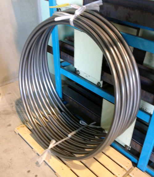 丸パイプのリング曲げ。3本ロールの曲げ機械で加工しました。