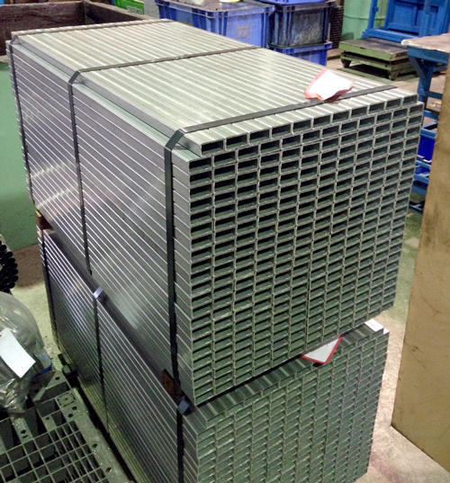 ペンタイト(溶融亜鉛メッキ鋼板)の角パイプ切断。