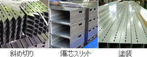 内外面取り、バリ取り、ロール切断、スエッジ加工、塗装、鍍金、レーザー加工、鋼材の切売、フライス加工、穴あけなどにも柔軟に対応